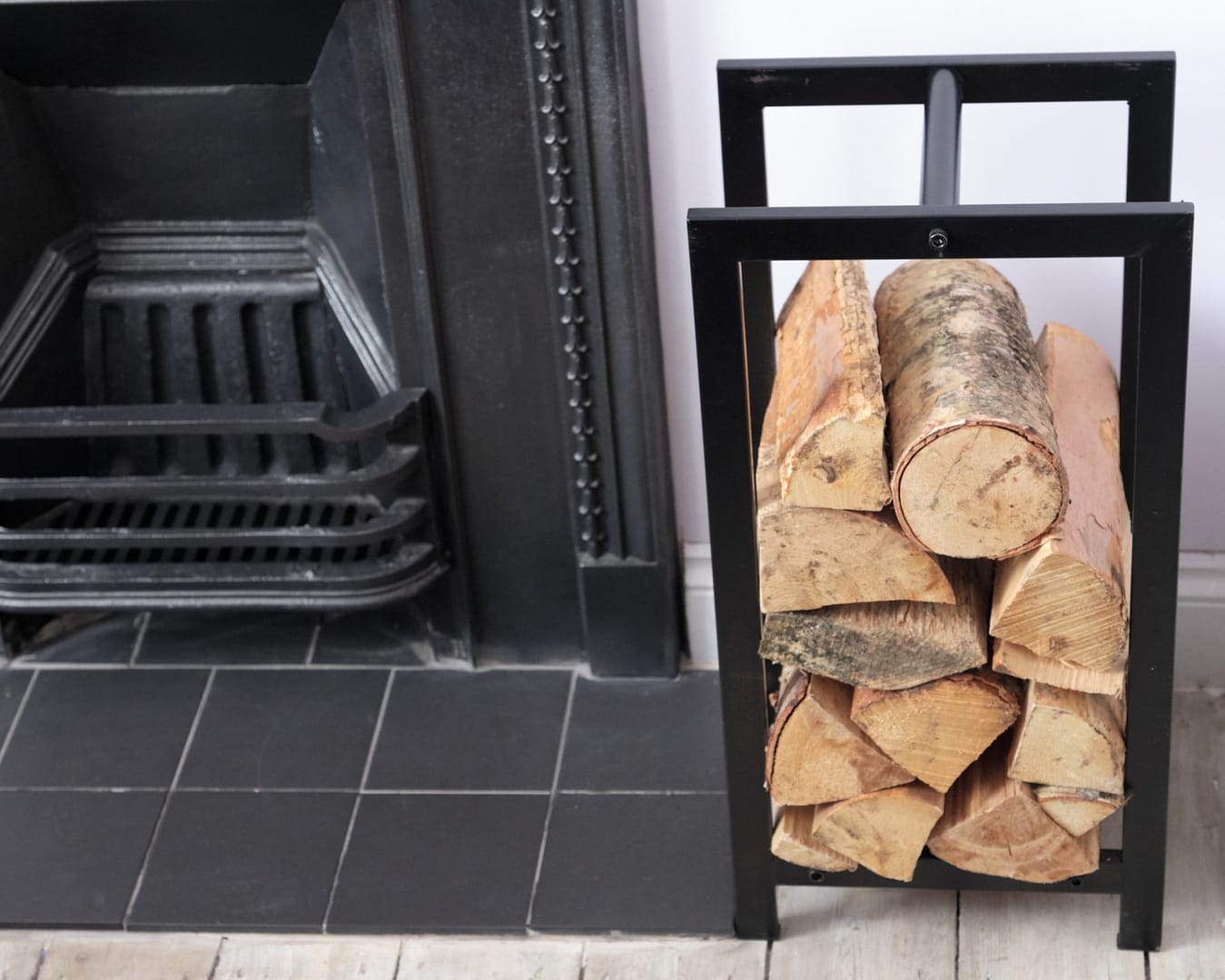 The log store has a black metal frame put together with bolts, so it would fit right in if your room has industrial elements. On the other hand, its slim, dark and geometric form is simple enough to blend into lots of other schemes as well, especially tucked into an ingelnook and filled with fresh cut logs. If you’re tired of collapsing log piles, something like this is well worth a look.